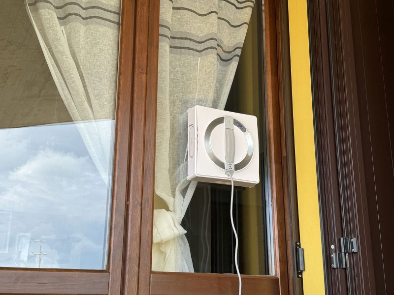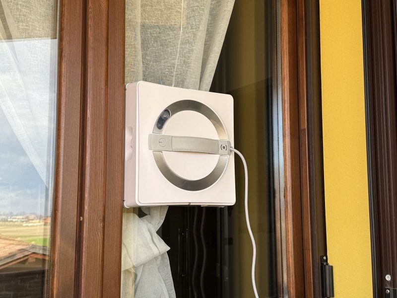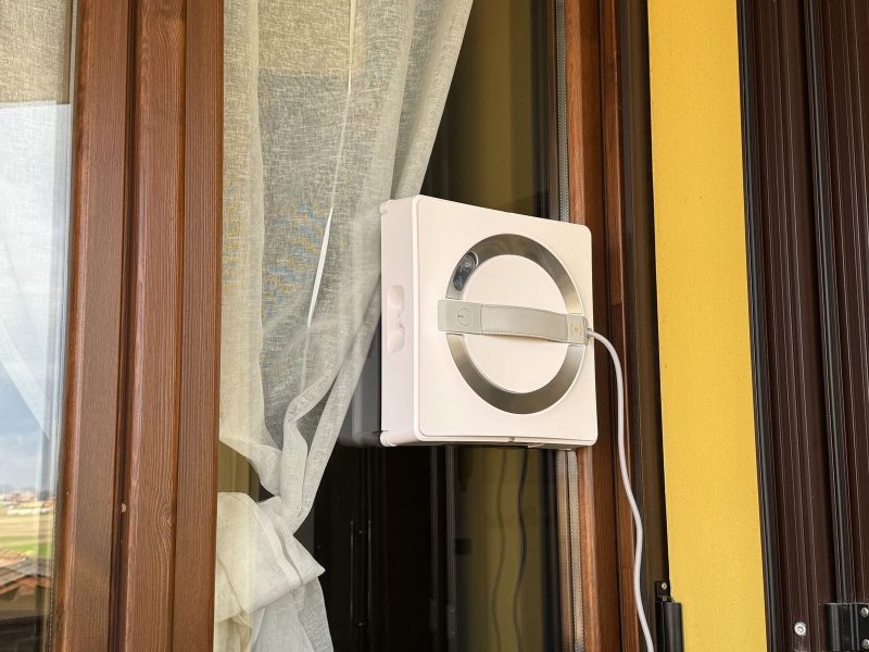 A questo punto il robot inizia a lavare la finestra in autonomia. È sufficiente aspettare che finisca e spostarlo su quella successiva. Quando finisce il lavaggio di un vetro, il robot ci avvisa tramite messaggio vocale e resta attaccato fino a quando non lo spostiamo.