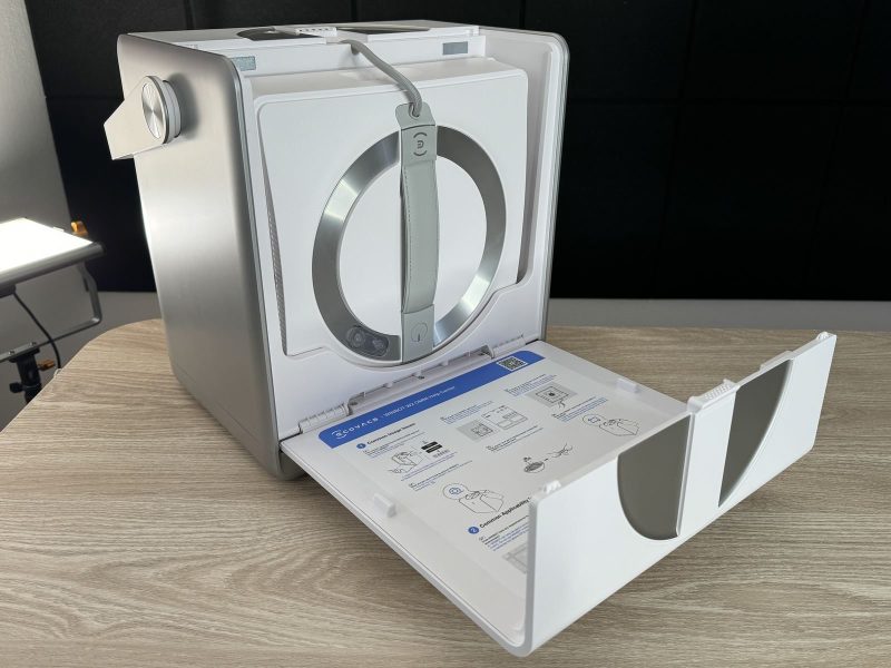Inoltre, il cavo che lo collega alla stazione non è solo di alimentazione, ma anche di sicurezza: se mai si dovesse staccare dal vetro, il cavo collegato alla base regge un peso fino a 100kg.