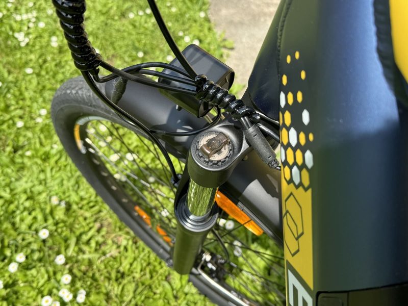 Frontalmente abbiamo una forcella ammortizzata, il motore è posizionato al centro (molto meglio di quelli che si trovano sulla ruota posteriore) e le ruote sono da 27,5 "x 2,25".