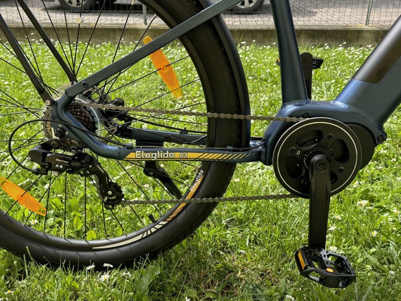 Eleglide C1 monta un motore da 250W (432W potenza massima) installato nella parte centrale, collegato direttamente alla trasmissione e in grado di fornire una coppia da 70 Nm.