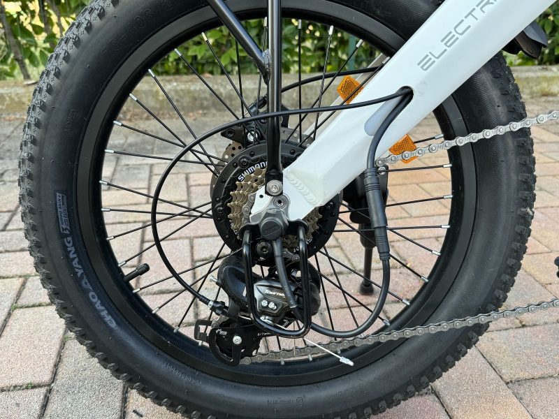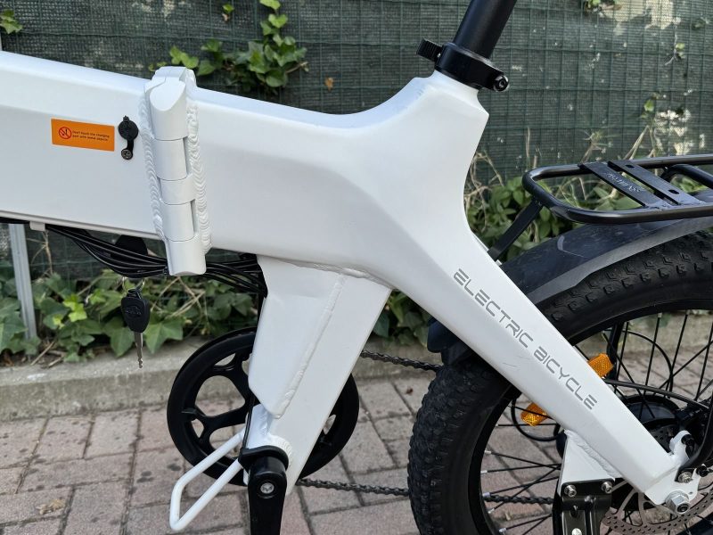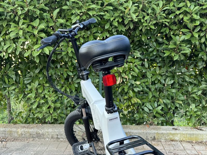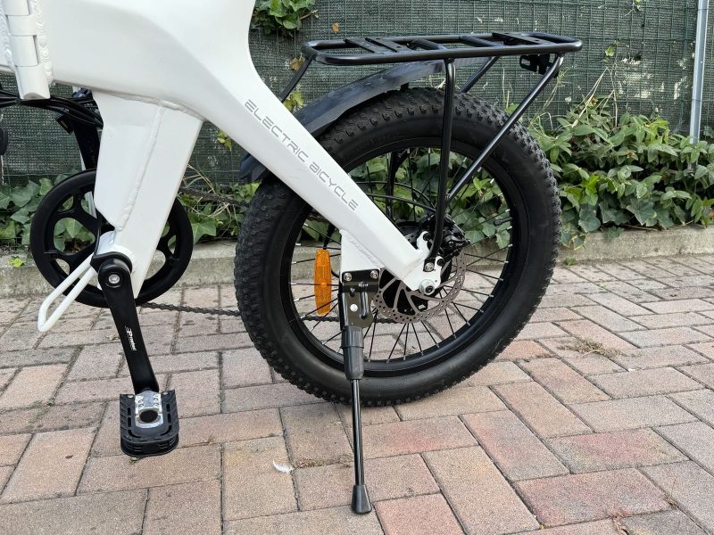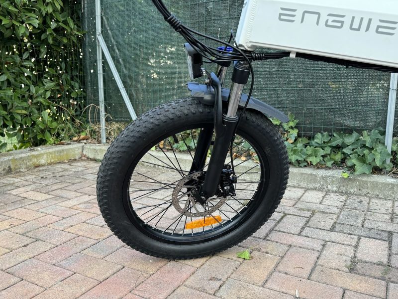 Abbiamo a che fare con una bici elettrica pieghevole che si distingue sicuramente da tutte le altre, anche grazie al fatto che le sue ruote larghe 20" e spesse 3" la fanno sembrare una fat bike (anche se in realtà non la è).