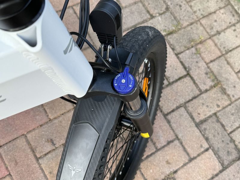 L'unico ammortizzatore è montato sulla forcella frontale: può essere bloccato e regolato facilmente.
