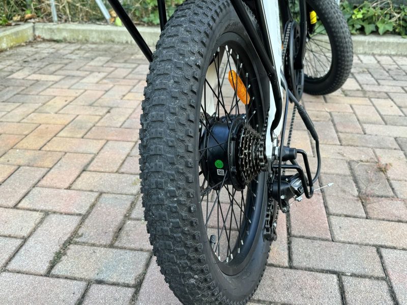 Le ruote hanno un diametro di 20" e sono larghe 3": come anticipato, ricordano molto quelle di una fat bike, ma sono più piccole.