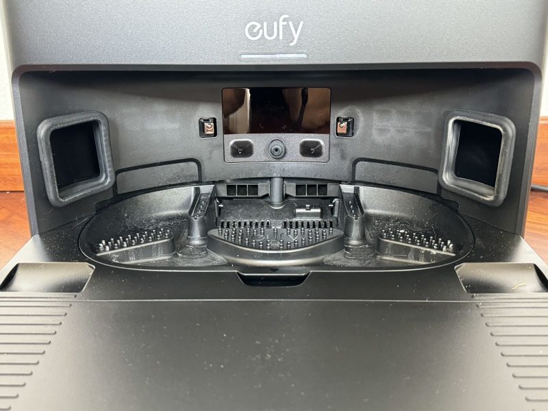 È poi presente una copertura in plastica a saracinesca che, una volta sollevata, ci permette di accedere alla vaschetta della polvere da 330ml. Il robot comunque si svuota automaticamente durante e dopo ogni pulizia.