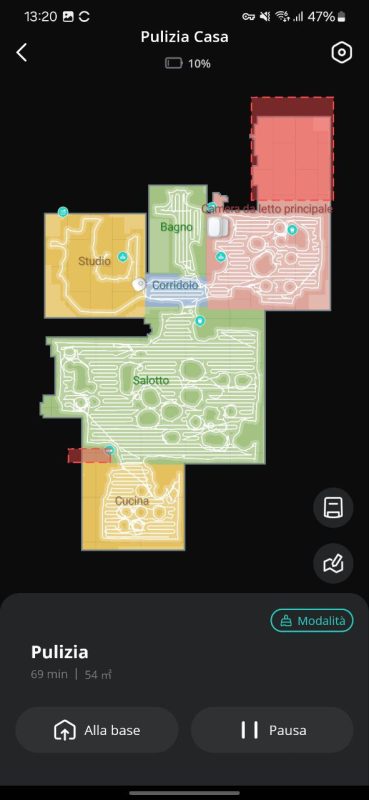 La prima mappatura è durata circa 7-8 minuti: ha suddiviso correttamente quasi tutte le stanze, lasciando uniti solo sala e corridoio. Ho comunque corretto la mappa rapidamente tramite l'app.