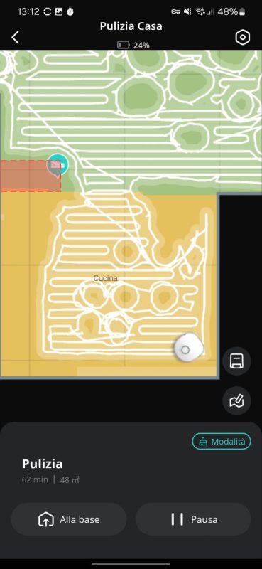 Ho provato a posizionarlo anche in altri ambienti e, in generale, ho notato che ogni tanto tende a non vedere qualche muro, ma se si accorge di qualche errore nella mappatura tende a correggerlo automaticamente dopo qualche lavaggio.