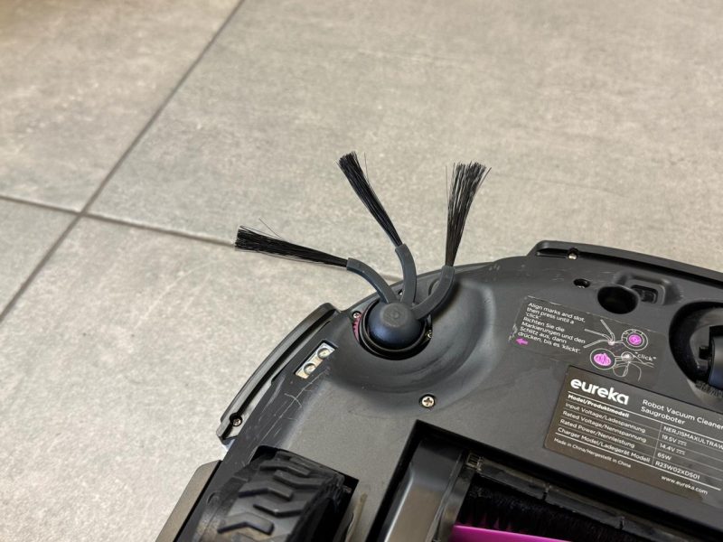 - la spazzola laterale non gira troppo forte, quindi non rischia di sparare in giro le briciole o i detriti più piccoli. Inoltre la velocità della spazzola viene regolata automaticamente in base alla dimensione dei detriti che vengono visti dai suoi sensori