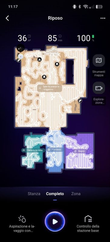 La prima mappatura è durata circa 5 minuti: ha suddiviso correttamente tutte le stanze e riconosciuto tutti gli ambienti alla perfezione. Possiamo correggere rapidamente eventuali problemi tramite l’app.