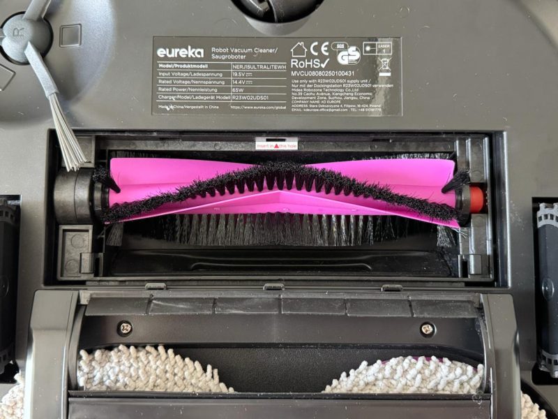 - 1 rullo centrale rotante in silicone e setole, che riesce ad eliminare perfettamente peli e capelli e ad evitare problemi di aggrovigliamento grazie al pettine meccanico che viene azionato ogni volta che il robot rientra alla base