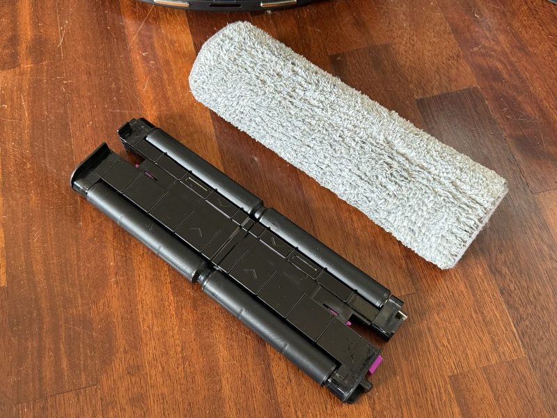 - un enorme rullo rotante, molto simile a quello delle lavapavimenti, che prende il posto dei classici pannetti o mop rotanti. Possiamo smontarlo per sostituirlo con quello semi-impermeabile e dedicato al lavaggio dei tappeti