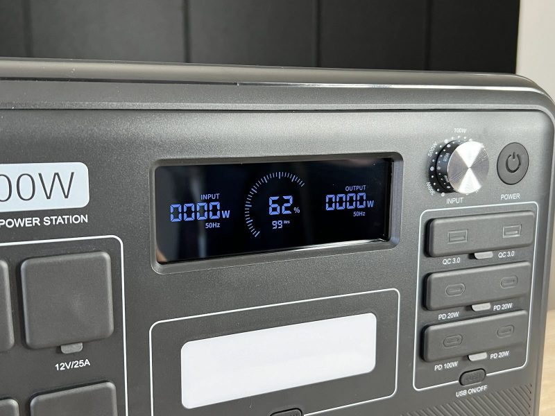 - un ampio display che indica la quantità di potenza in ingresso e in uscita, ma anche quali sono le porte attive e l'autonomia residua della batteria, sia in ore che in percentuale