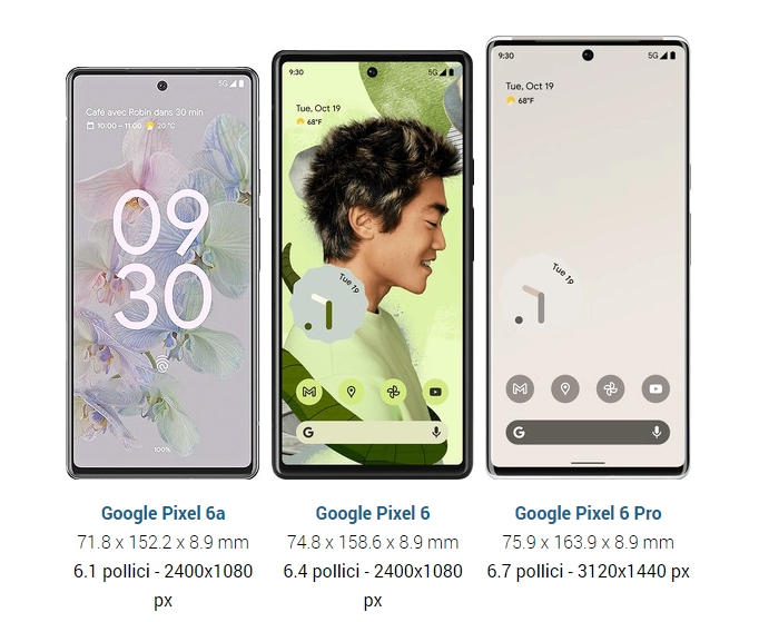 Lo smartphone è molto simile agli attuali Pixel 6 e 6 Pro, ma risulta più leggero e compatto rispetto a questi.