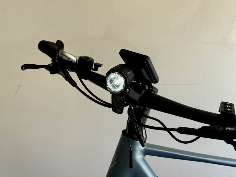 La bici monta una luce frontale perfetta per illuminare la strada di notte e per farci vedere quando pedaliamo al buio.