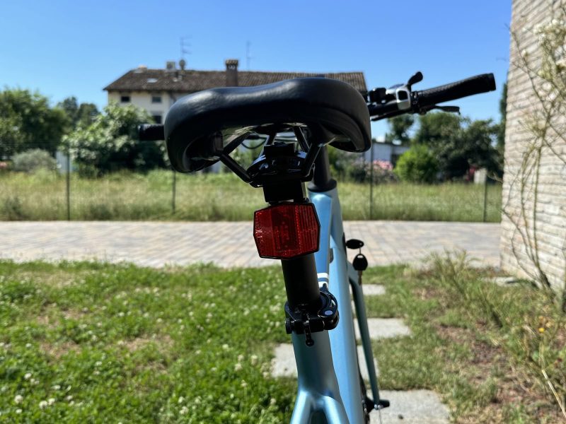 Purtroppo è assente il fanale posteriore, sostituito da un catarifrangente rosso. Considerato il prezzo della bici, avrei gradito un fanale posteriore.