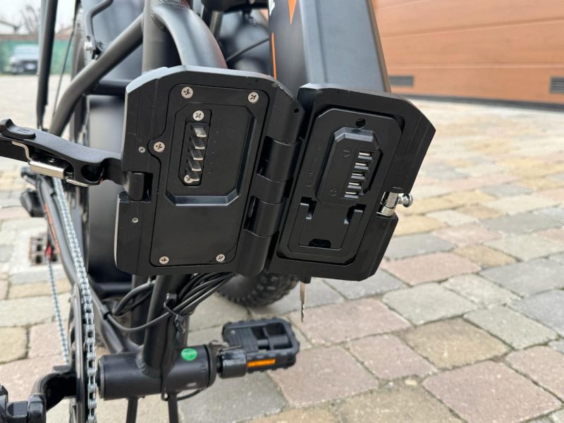 Nella parte bassa del telaio troviamo la serratura che permette di attivare la bici e di rimuovere la batteria (la chiave deve rimanere inserita per usare la bici). La posizione è abbastanza scomoda, ma molto sicura.