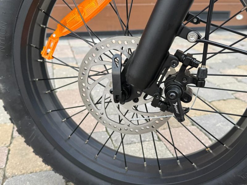 La bici è dotata di freni a disco meccanici da 160mm, che garantiscono buone frenate fino ai 25 km/h.