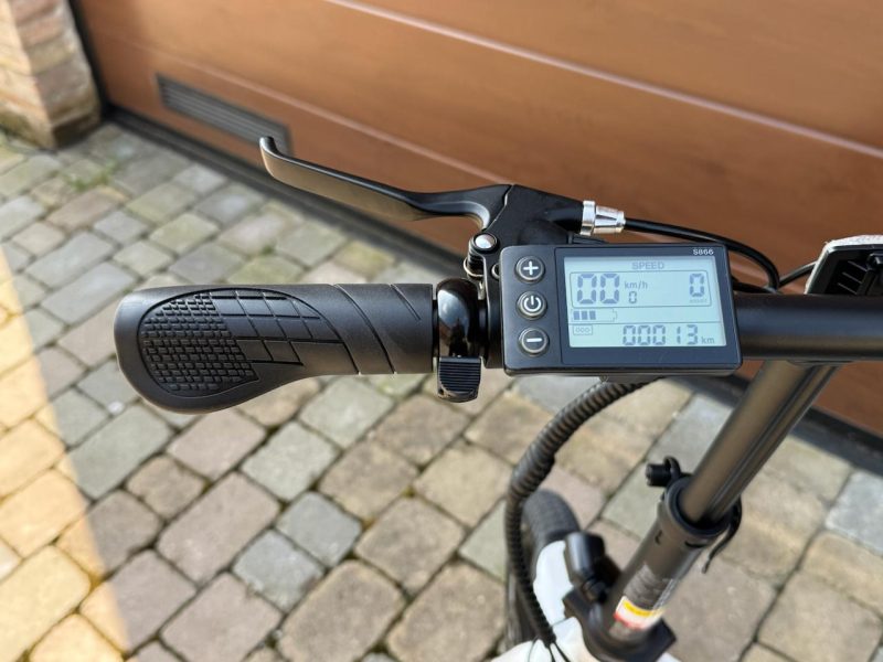 Al pari di altri prodotti simili, il manubrio è molto stretto, ma ci permette di controllare la bici in modo sufficientemente stabile sull'asfalto. Su sterrato e strade dissestate, invece, diventa più complicato guidare la bici con un manubrio così corto.