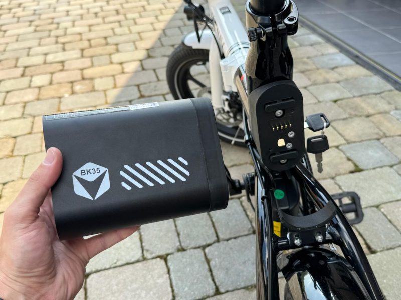 Possiamo scegliere se ricaricare la batteria lasciandola attaccata alla bici, oppure se smontarla per ricaricarla in casa o in ufficio. È leggerissima e poco ingombrante, quindi possiamo infilarla comodamente nello zaino.