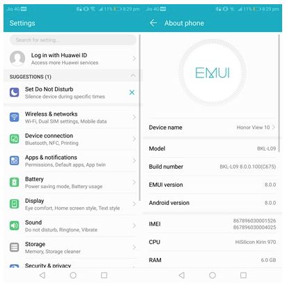 - OS: Android 8.0 Oreo con EMUI 8.0