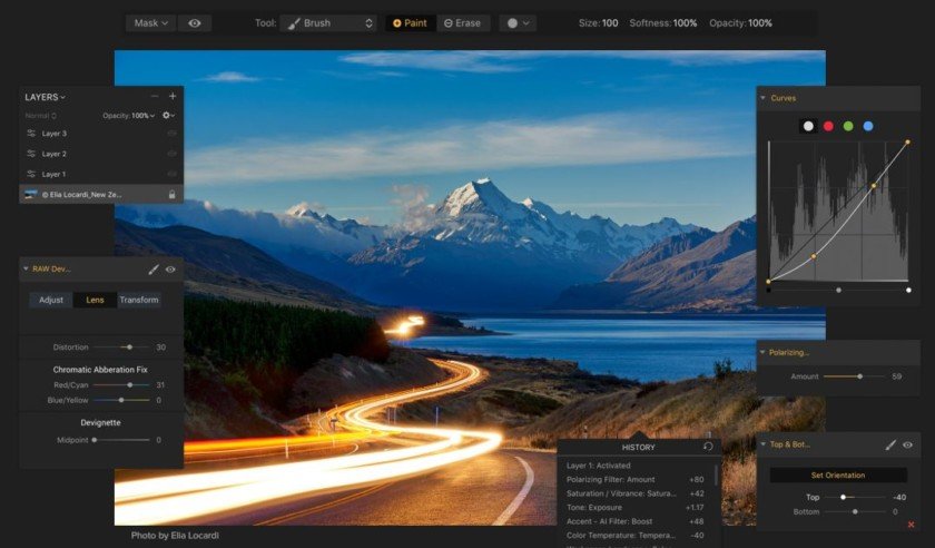 Con la nuova release la velocità di elaborazione è migliorata del 300%. Inoltre è stato re-ingegnerizzato il motore proprietario che sviluppa i file RAW, introducendo la correzione automatica della distorsione delle lenti e dell’aberrazione cromatica.