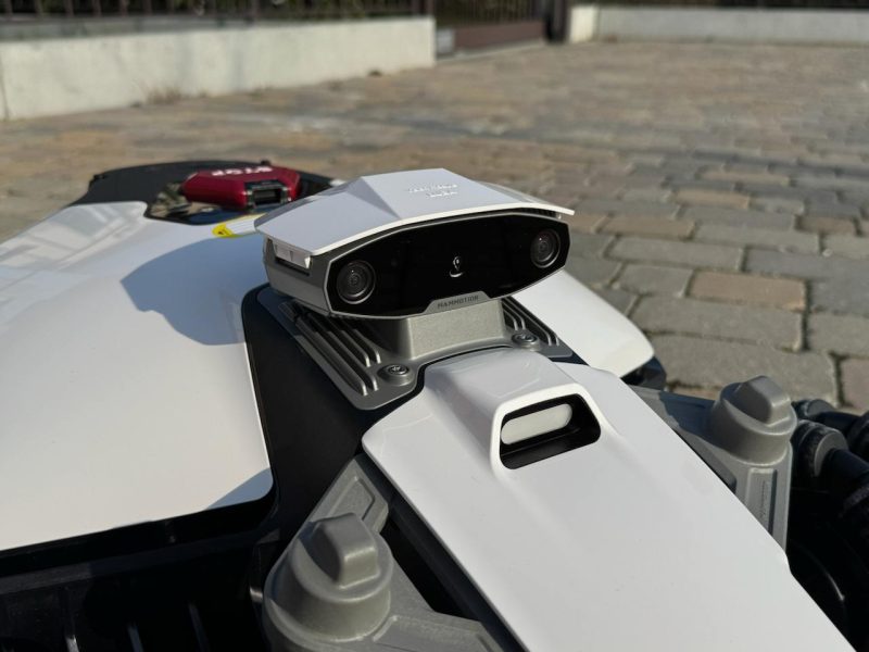 Interessante anche la presenza di una doppia fotocamera nella parte superiore che gli permette di avere una visione 3D dell'ambiente e degli ostacoli e, di conseguenza, una navigazione molto precisa.