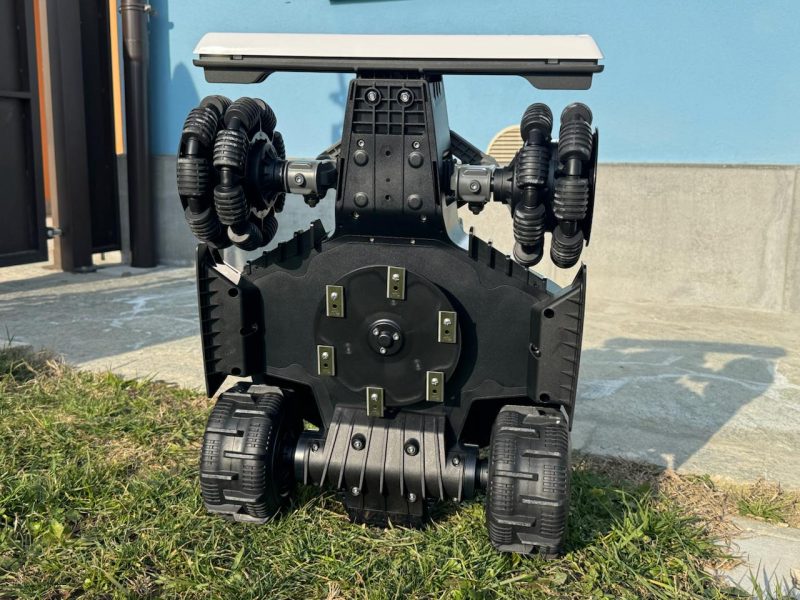 Inferiormente troviamo invece un disco da 20 cm con 6 lame rotanti con motore da 88W che si occupa del taglio del prato, ma di questi parleremo a breve.