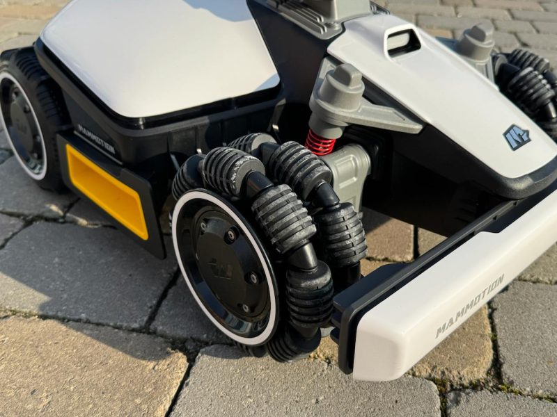 E non dimentichiamo che le sue ruote sono anche ammortizzate e adattive: troviamo infatti delle sospensioni che permettono al robot di avere un telaio snodato e di essere sempre perfettamente allineato al terreno per un taglio perfetto, continuo e stabile anche su terreni accidentati.