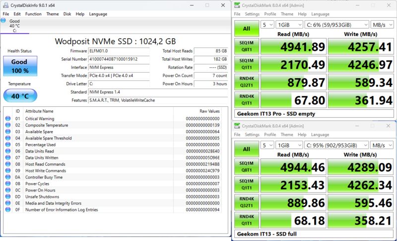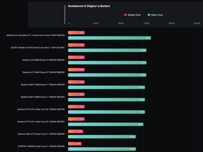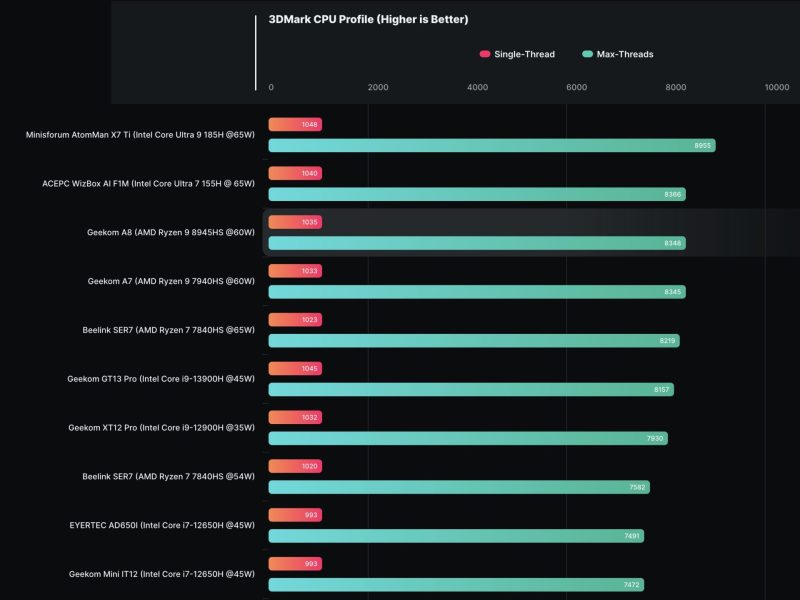 Parlando di CPU abbiamo prestazioni quasi uguali ai modelli A7 ed A8 sempre di Geekom. Nel complesso ha sempre ottenuto punteggi molto elevati, che confermano che questo mini pc è una soluzione ideale per professionisti e content creator e che senza dubbio è il più potente mini pc Intel che abbia mai testato.
