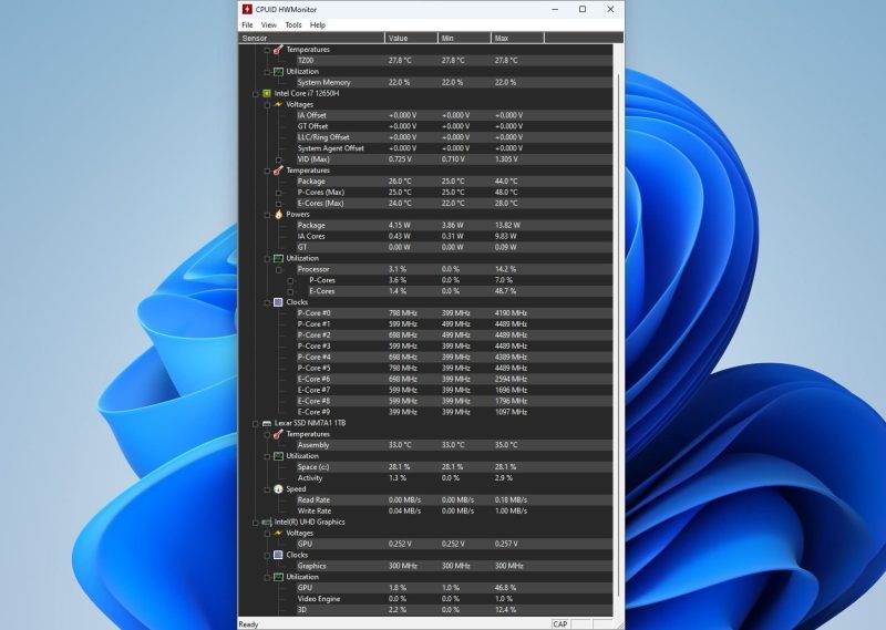 - processore Intel Core i7-12650H di 12a generazione (10 core, 16 thread, 24 MB di cache, fino a 4,70 GHz), con TDP pari a 45W