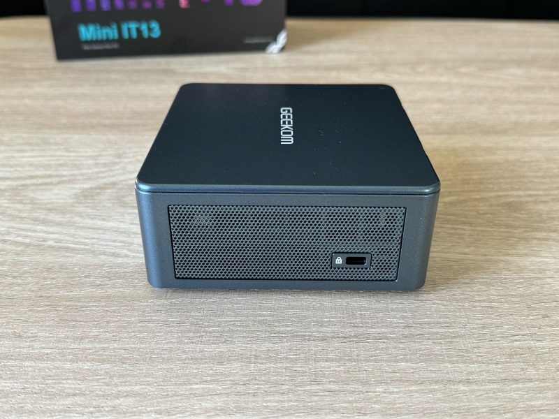 GEEKOM Mini IT13 ha un design squadrato con bordi arrotondati e molto compatto. In questo modo possiamo posizionarlo veramente ovunque, senza alcun problema di spazio.