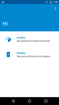 L'unica personalizzazione è un'app di Motorola che permette di aggiungere alcune gesture per fare svolgere allo smartphone determinate azioni in modo più veloce e immediato. C'è anche una funzione che permette di vedere le notifiche quando lo schermo è spento (simile alla funzione Always ON Display che abbiamo sugli smartphone di Samsung).