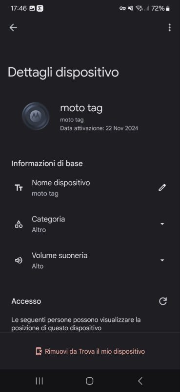 Qui però abbiamo un problema importante: al contrario di AirTag di Apple o degli SmartTag di Samsung, se cambiamo il telefono al quale abbiamo collegato Moto Tag, questi continueranno ad essere visti dall'app "Trova il mio dispositivo", ma non verranno più riconosciuti dall'app di Motorola.