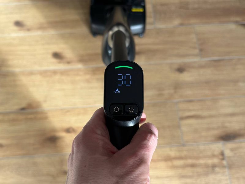 A quel punto è sufficiente premere il pulsante di accensione e inclinarlo in avanti per avviare aspirazione e lavaggio.