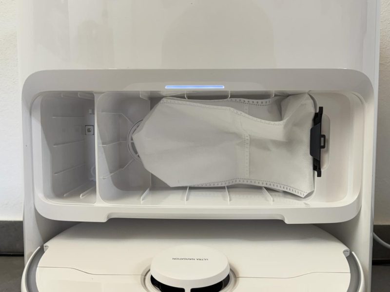 Sempre rispetto a P50 Pro Ultra, la sua base non ha la funzione di rilavaggio dei moci e del pavimento, che sarebbe stato utile per rendere ancora più automatico il lavaggio della casa.
