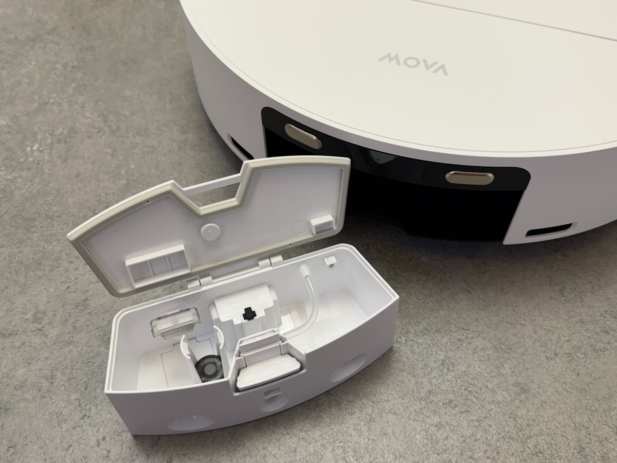 Per la prima volta sui robot MOVA la torretta LiDAR è assente: i sensori sono stati integrarti nella parte frontale, in modo da ridurre l'altezza al minimo e permettergli di passare sotto ai mobili più bassi. Questo gli permette di essere uno dei robot con rullo più sottili in assoluto.