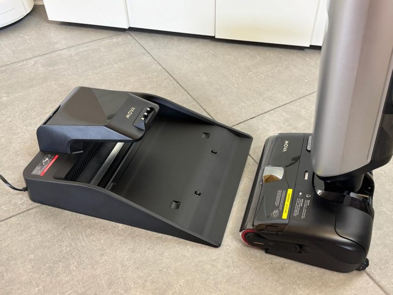 La basetta è uguale a quella di X4 Pro e diversa da quasi tutti i concorrenti: non dobbiamo sollevare la lavapavimenti per metterla al suo interno, ma è sufficiente spingerla sulla rampa.