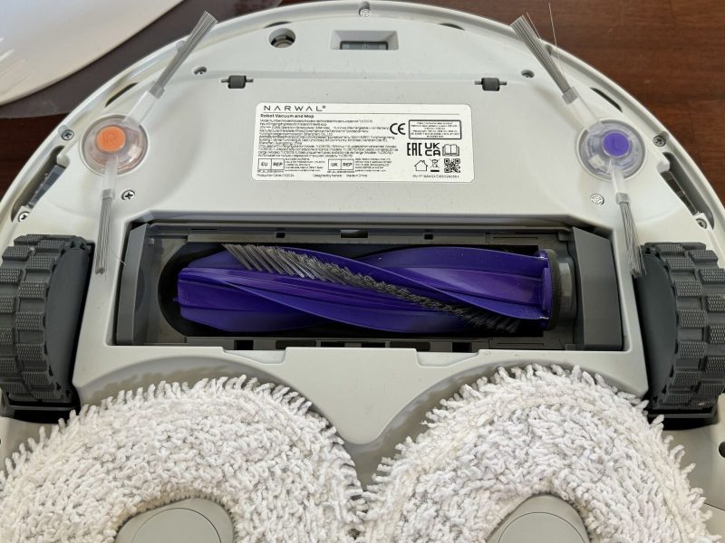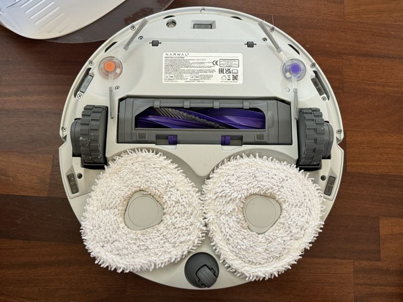 Narwal Freo X Ultra monta 2 mop posteriori triangolari che fanno pressione sul pavimento pari a 12N (il doppio dei concorrenti) e ruotano a 180 giri/min.