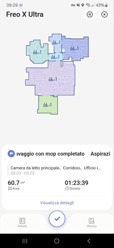 La prima mappatura è stata molto veloce: in 9 minuti ha suddiviso correttamente tutte le stanze, senza sbagliare. In caso di errori, comunque, possiamo modificare la mappa tramite l'app in pochi click.
