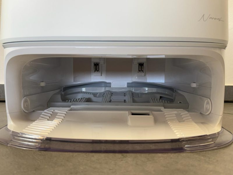 - manca il serbatoio di acqua interno, aspetto che obbliga il robot a tornare più spesso alla base a lavare e bagnare i mop