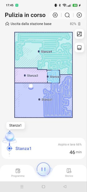 La prima mappatura è durata circa 5 minuti: ha suddiviso correttamente tutte le stanze e riconosciuto tutti gli ambienti alla perfezione. Possiamo correggere rapidamente eventuali problemi tramite l’app.