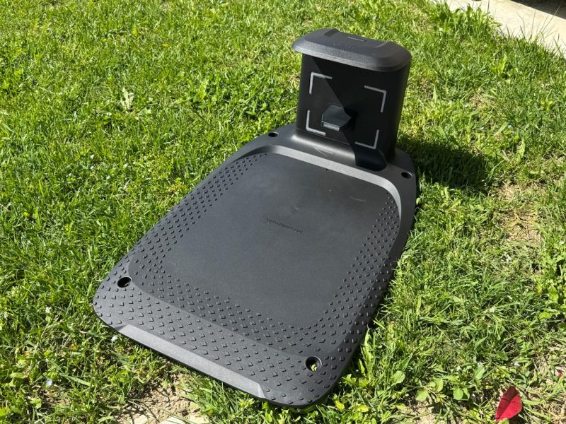 - posizionare la base di ricarica e fissarla sul terreno tramite i picchetti a vite (deve sempre essere in una zona coperta da WiFi)