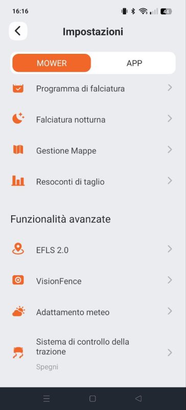 L'app di Navimow è davvero molto completa, ben fatta e ben organizzata.