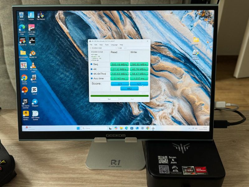 Purtroppo l'SSD montato in questo mini PC è abbastanza lento: ha fatto registrare 425 MB/s in scrittura e 501 MB/s in lettura, che sono valori molto bassi per un SSD moderno.