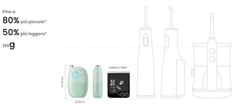 Risulta dunque perfetto per essere portato sempre con noi anche durante un viaggio, così come è molto più comodo da utilizzare durante le sessioni di igiene orale.