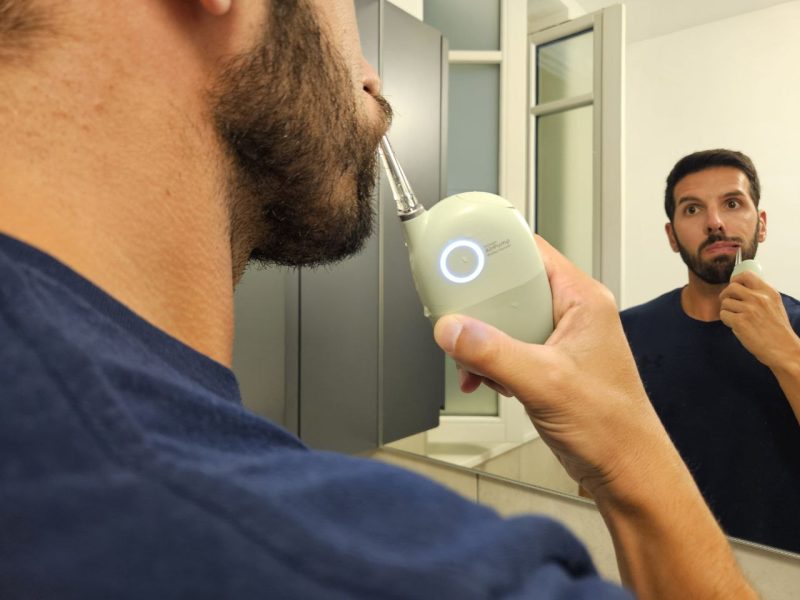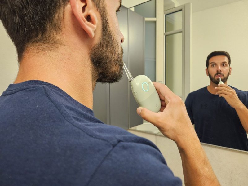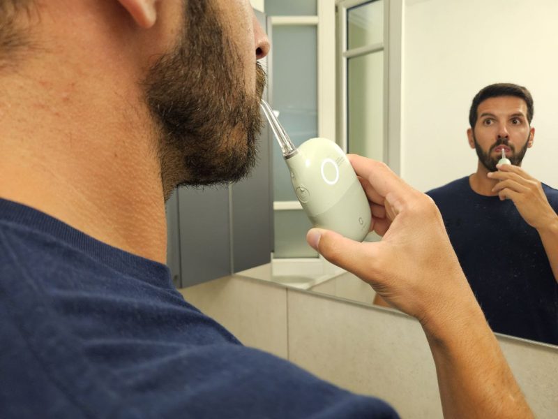Prima di tutto, infatti, Oclean AirPump A10 è senza filo, quindi si ha maggiore libertà nei movimenti. Il mio Oral-B, invece, è collegato tramite filo al serbatoio, quindi ero molto più limitato.