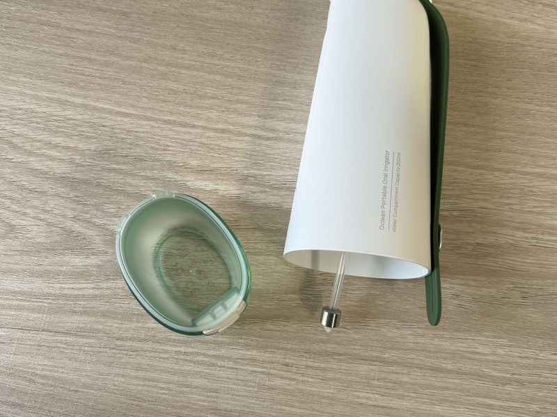 Prima di tutto, infatti, W10 è senza filo, quindi si ha maggiore libertà nei movimenti. Il mio Oral-B, invece, è collegato tramite filo al serbatoio, quindi ero molto più limitato. Il fatto che sia "tutto insieme" ci permette anche di trasportarlo comodamente o di portarlo con noi durante un viaggio.