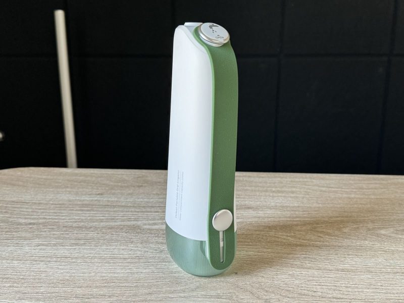 La forma richiama quella di uno spazzolino da denti elettrico, ma ovviamente risulta molto più grande e ingombrante visto che al suo interno abbiamo anche il serbatoio dell'acqua da 200ml.