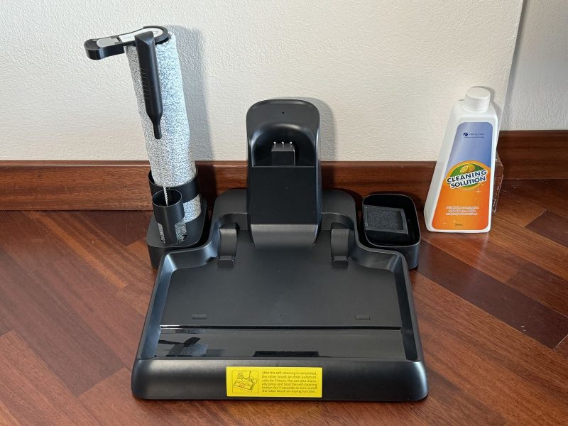 Proscenic F10 può lavare automaticamente il rullo sulla sua base. L'operazione è completamente automatica e richiede circa 1 minuto.
