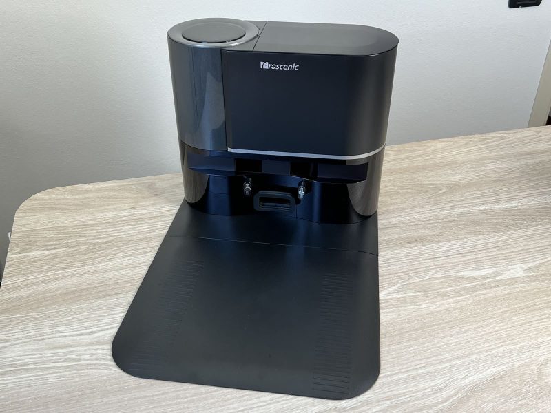 Oltre alla base di ricarica è presente anche un utilissimo tappetino un plastica che ospita il robot durante la ricarica, evitando che i mop bagnati vadano a contatto con il pavimento.