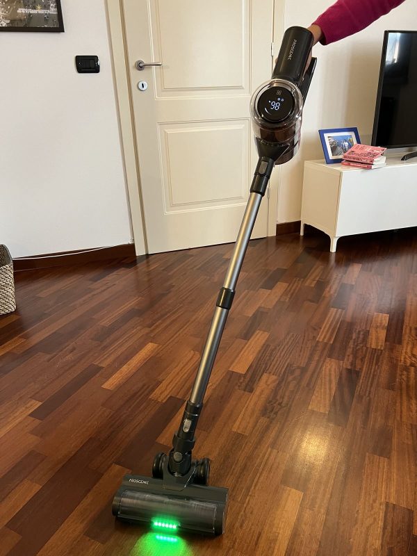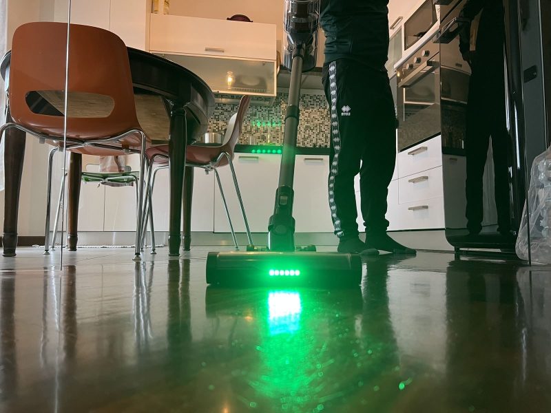 Il LED verde mostra le piccole particelle invisibili a occhio nudo, aiutando a vedere la polvere più chiaramente. Ho fatto un confronto con altri aspirapolvere che avevano il LED bianco e la differenza è stata enorme: con il Proscenic P12 sono riuscito a vedere molta più polvere e molta più sporcizia.